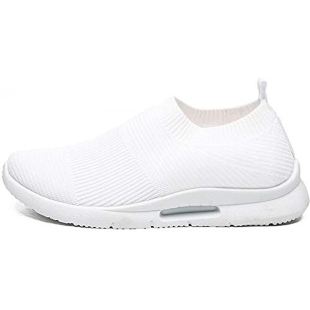 Men's Running Shoes Breathable Knit Slip On Sneakers Lightweight Athletic Casual Sports Shoes White