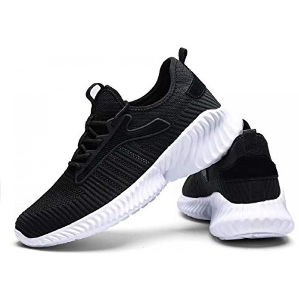 Mens Slip On Walking Shoes Fashion Breathable Mesh Soft Sole Casual Athletic Lightweight Running Sneakers Black-White