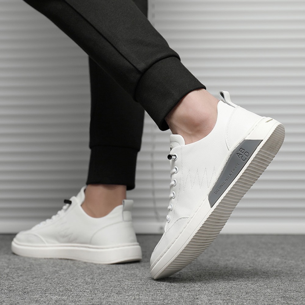 New Autumn White Men's Leather Sports Shoes Hot Style Trendy Casual Sneakers